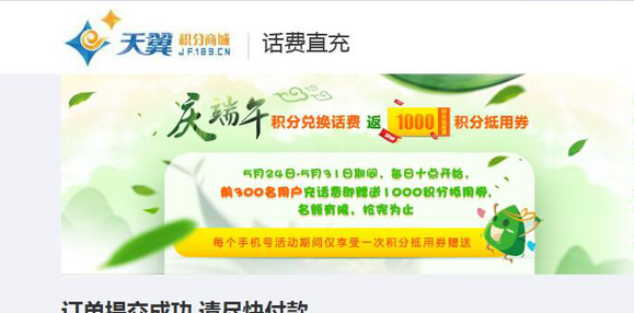 (中国电信”积分充值“页面)
